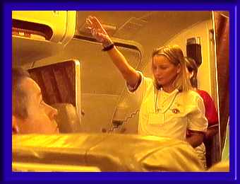 | For the benefit of non-believers, the attendant demonstrated what was going to happen: the pilot would give it the gas and WOOOSH - our plane would climb into the sky.