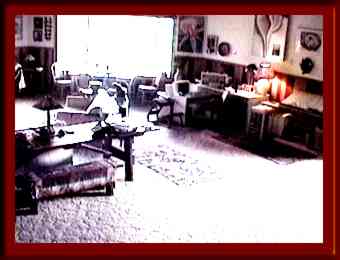 On the left you see half of an inside door that shuts off the front room from the back part of the house, which contains three bedrooms and double garage.
