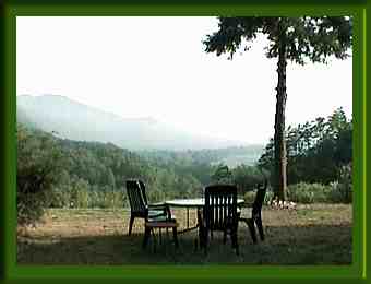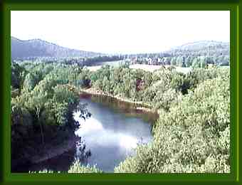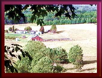 | Standing on the Point and looking upstream, away from the house, we saw the Greenbriar River and the farms beyond.